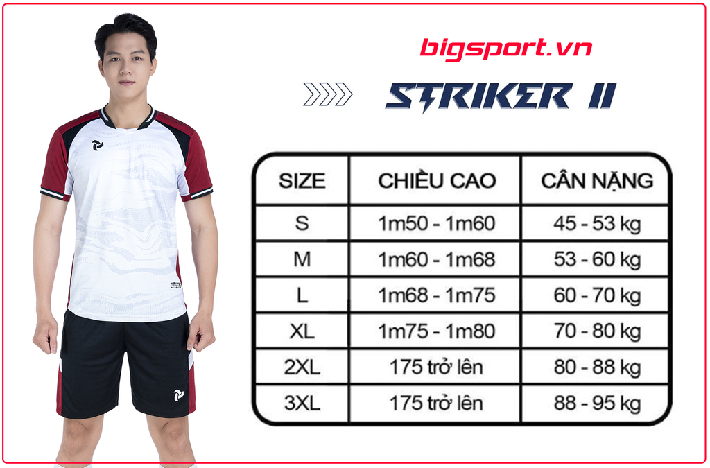 Bảng size Áo đá bóng không logo Just Play Striker 2: