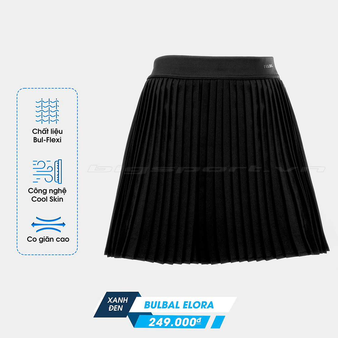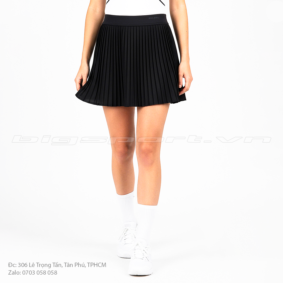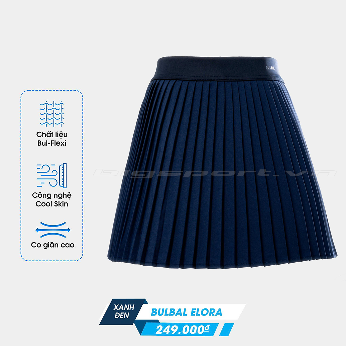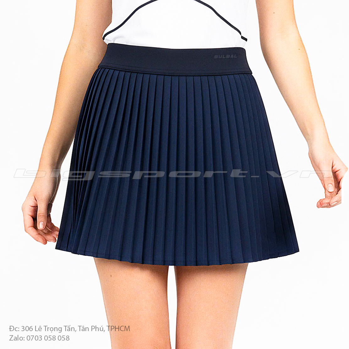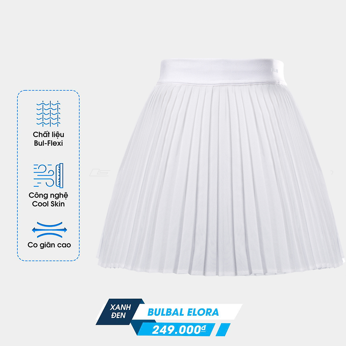 • Thiết kế: Váy xếp ly bản nhỏ, cạp cao, độ xòe nhẹ, tích hợp lớp quần bảo hộ bên trong.