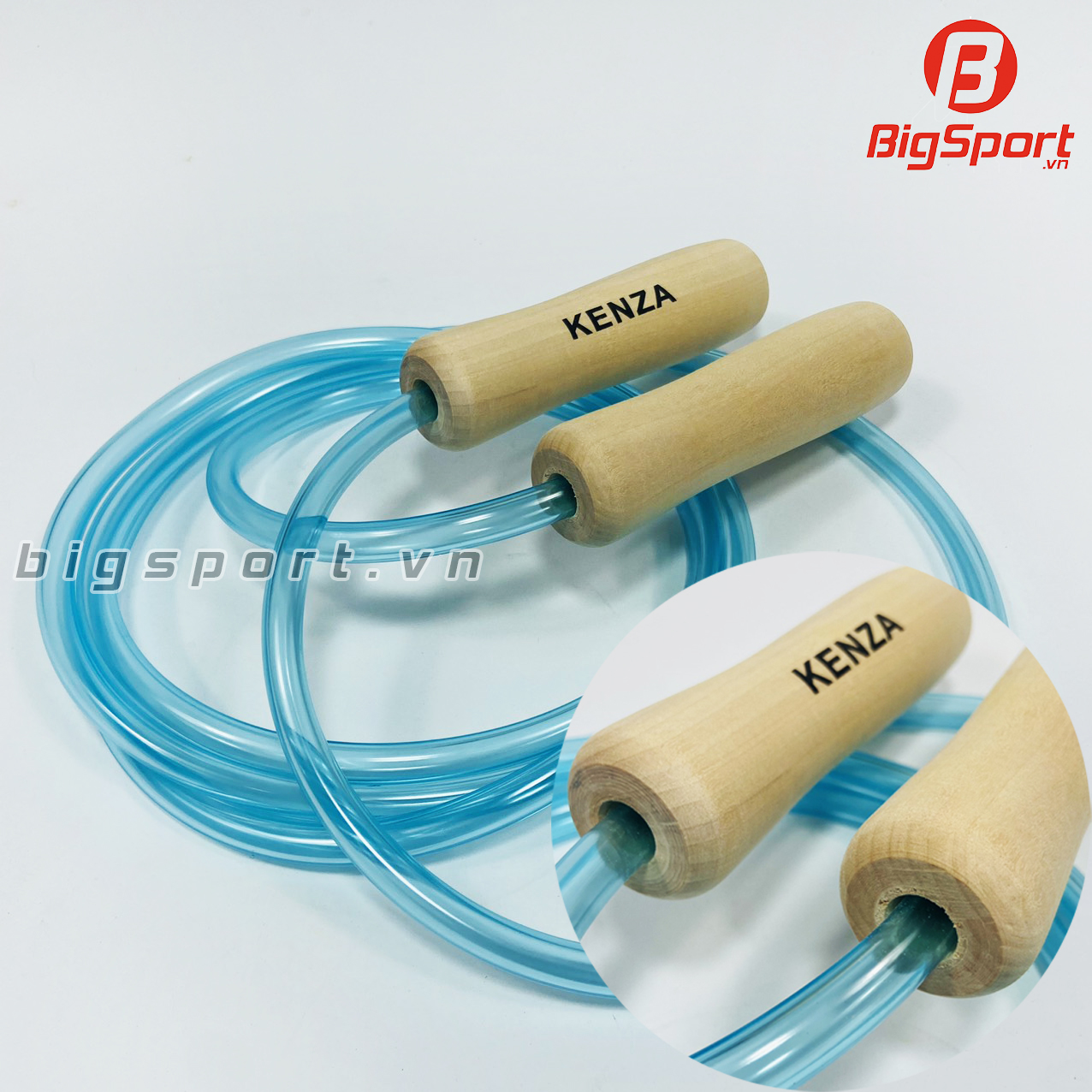 - Dây nhảy thể lực Kenza sử dụng cán gỗ, được tiện bo cán cho vừa vặn với tay cầm, chất liệu cán gỗ ở đây khá nhẹ nhằm tăng thêm trọng lực lên sợi dây.