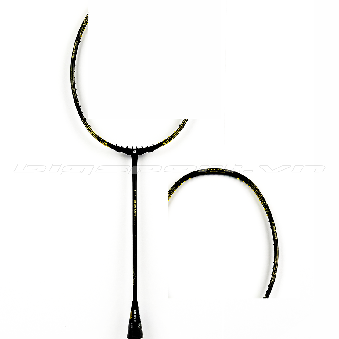 - Điểm nhắn đặc biệt của Vợt cầu lông Apacs Z-Ziggler nước sơn đậm, nhìn chắc khỏe và lỳ. Khung vợt nhỏ và cán đủa siêu nhỏ, lấy hình ảnh cây vợt huyền thoại một thời của Yonex, đó là ZF2 LCW.